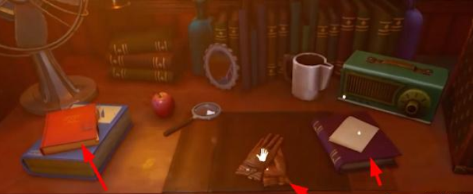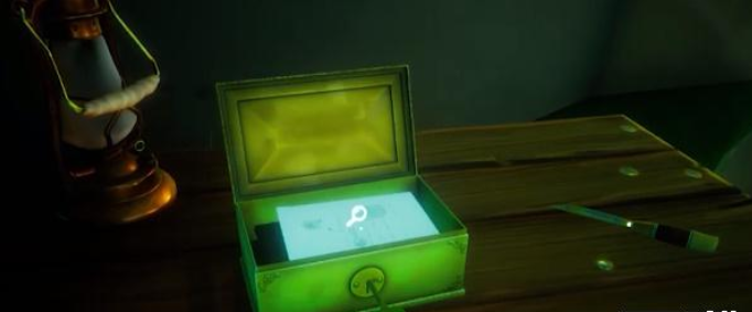 - 在桌上发现一个上了锁的盒子,使用刚才在密码箱中照片背后的钥匙就能打开。