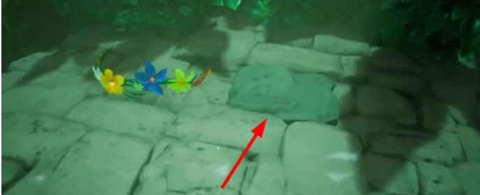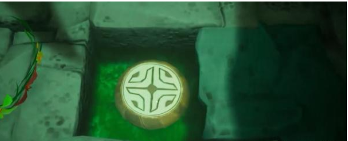 - 紧接着我们往回走,找到有画圈的石柱这里,然后打开后方地面上的机关,可以获得启动大门的装置。