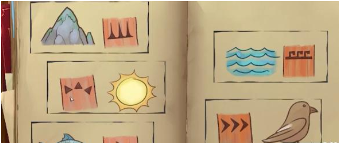 - 将刚才探索找到的5条线索的图案,依次旋转柱子上的标志。