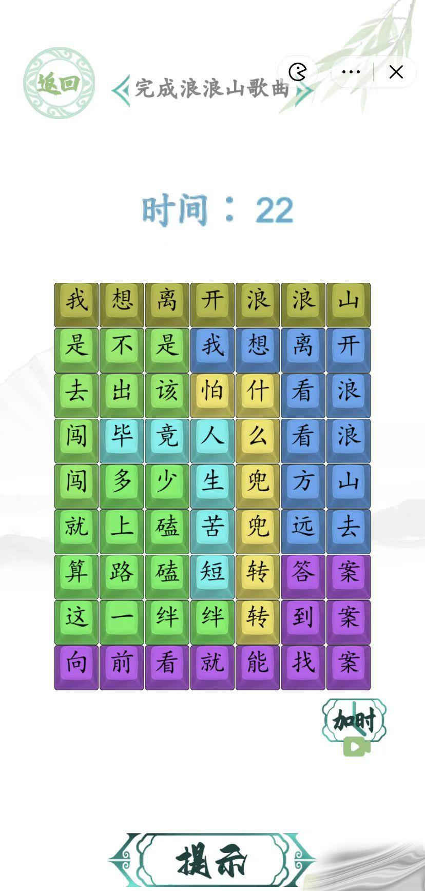 最后,关于汉字找茬王浪浪山歌曲完成方法的内容分享就到这里了,大家产生相关困扰的时候可以根据这篇文章进行处理解决,希望对大家有所帮助,如果还有其他问题可以在站内进行查找了解更多内容哦。