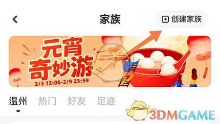 - 进入家族列表页面,点击右上角的创建家族选项;