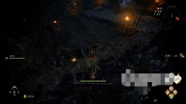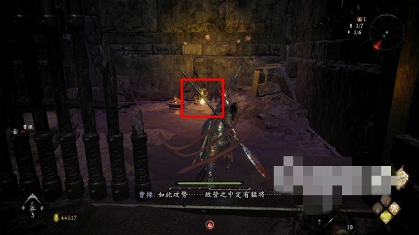 在BOSS门前的牙旗右侧的平台边缘可以捡到一个丹药,跳至下层后还可以获得该简牍。