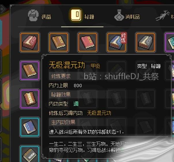 打完获得30000点经验和金色内功(边上有4本武道感悟)。