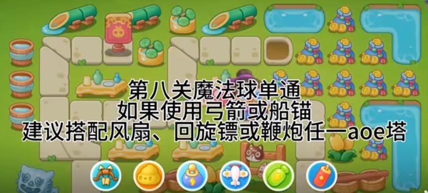 保卫萝卜4纸鸢探春第8关怎么过- 纸鸢探春第8关开局造两个回旋镖堵门就好,有钱了继续在中间铺满回旋镖锁定下面的木杆
