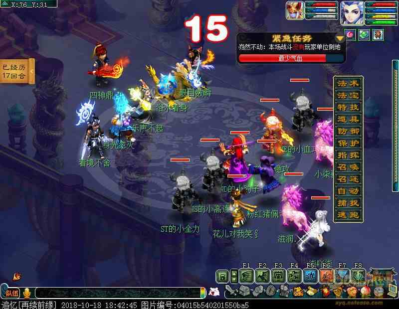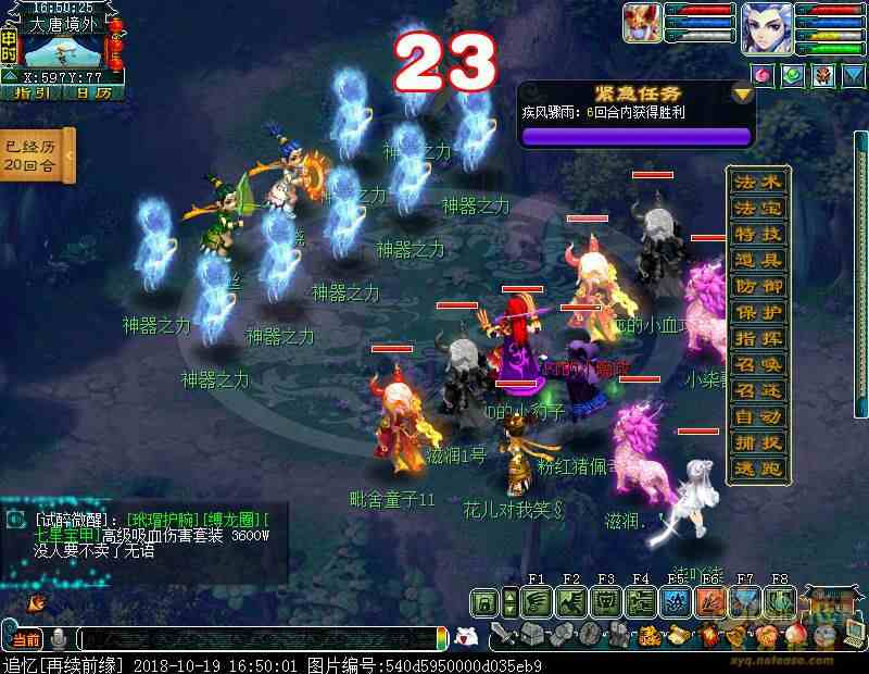 这里依旧推荐的队伍配置为3辅助(1封系2辅助或2封系1辅助)+1物理点杀+1法系输出,阵法是比较多变得,这个根据队伍的配置和硬件来转换,常用的是龙阵、风阵、鸟阵。楼主杀这个归墟时选用的是龙飞阵,召唤兽以血攻耐攻宝宝为首选。楼主用的是7000血2400攻击的血攻宝宝开场。辅助身上带点常规药品和酒,适当的偷酒吃药会让战斗省时省力。