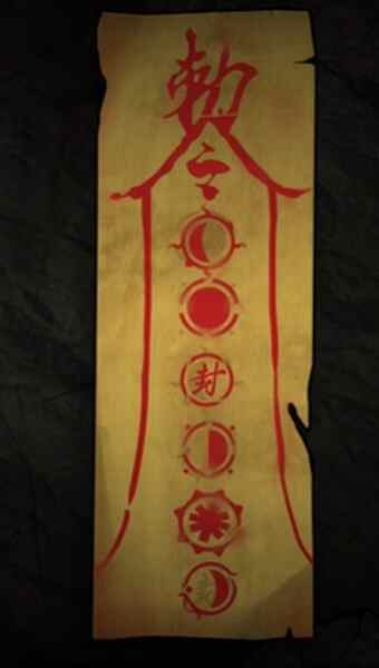 - 查看墙上的符咒,将图案调整和后面阴影一致,只有“封”字能移动。
