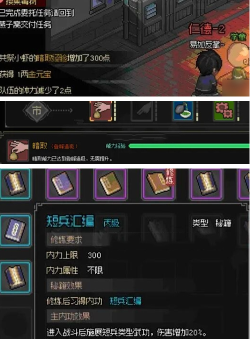 - 等到暗取够了之后就回来找青青,这时直接加好感就能入队了,同时还可以得一本心法能够加短兵伤害。