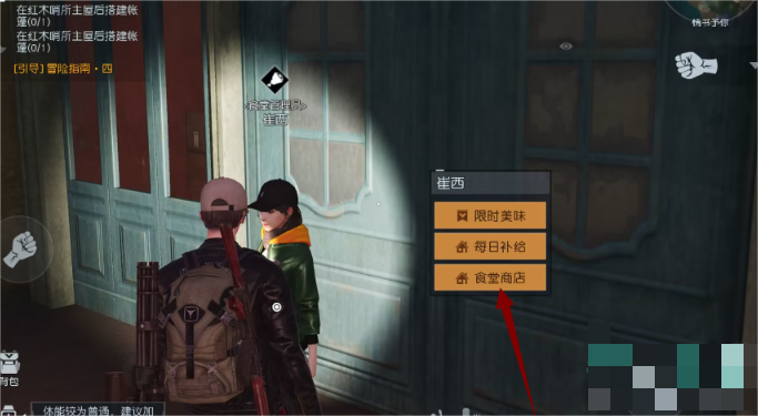 - 进入营地之后可以找到食堂管理员,在这里对话内容选择点击食堂商店按钮。