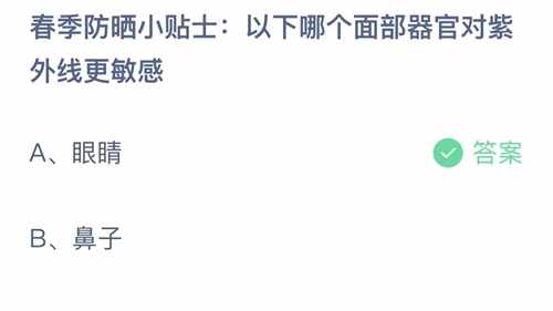 支付宝蚂蚁庄园2023年3月22日答案分享,即日革新的问题是:“以停哪个面部器官对于紫外线更敏锐G伪,许多小友人在望到题目蚀郎能关于简直谜底煌?了了,招致还不精确的解答题目得回赏赐,下面一起来看看相关的内容介绍。