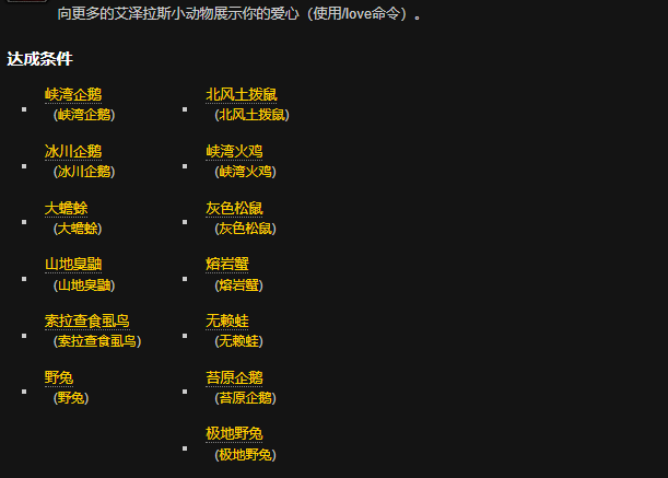 陪伴我成长的小松鼠们成就攻略这个成就需要向以下小动物施放/LOVE 示爱动作