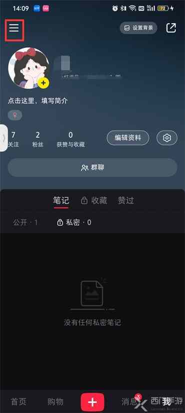 - 然后在我的页面中点击左上角的 三横 图标;