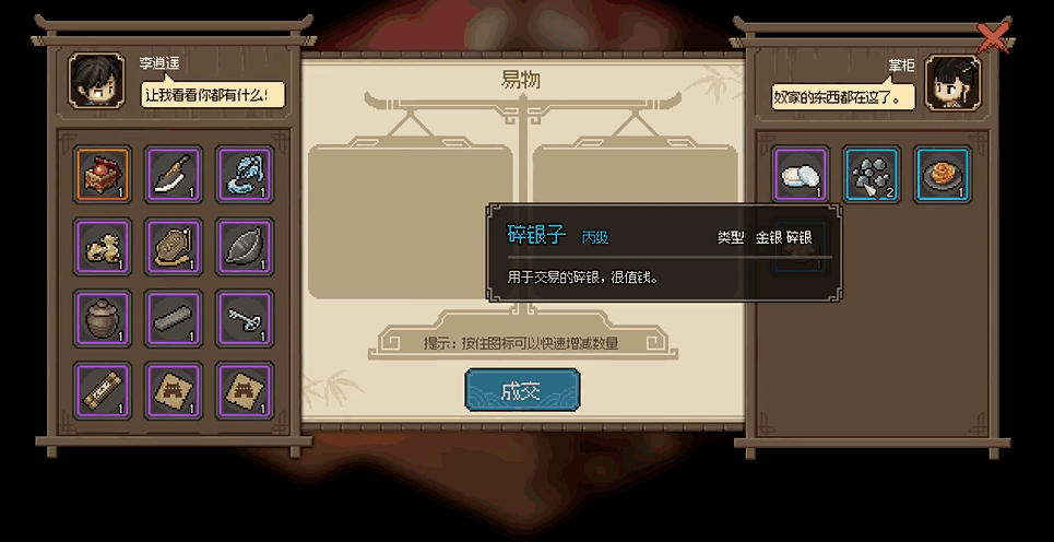 - 碎银子。用于交易的碎银,很值钱。