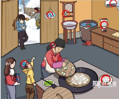 - 玩家在规定的时间里找出图中所有不和谐的地方后就可以通关了,不知道这些地方的玩家可以参考上图的红圈。