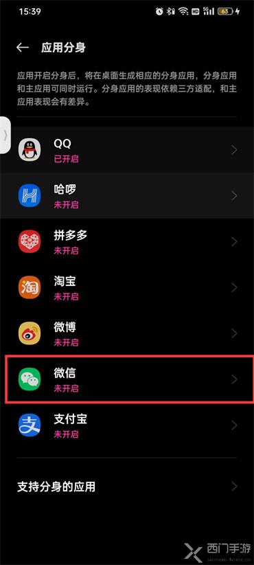 - 最后在该页面中点击开启 开启应用分身 把后面的按钮打开即可;