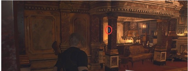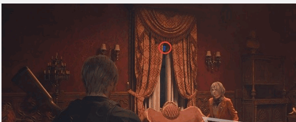 - 继续在楼上的骑士厅,右边的窗帘后面有一个蓝色徽章。