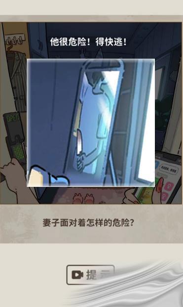 - 妻子会遇到什么样的危险,点击后面吗的镜子可以看到这个男人后面是有着一把刀。