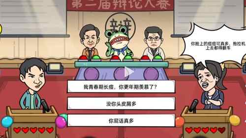 - 玩家们先是进入到关卡根据内容选择回怼对方的话,必须是要怼赢的。