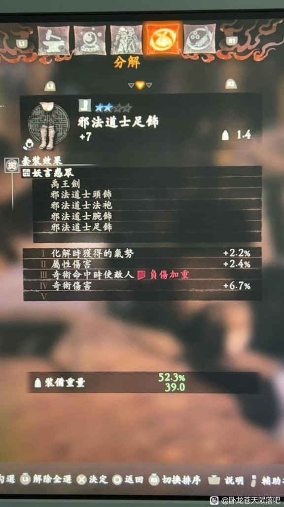 I.因攻击承受的伤害-I.3% II.格挡时失去的气势 -2.2%