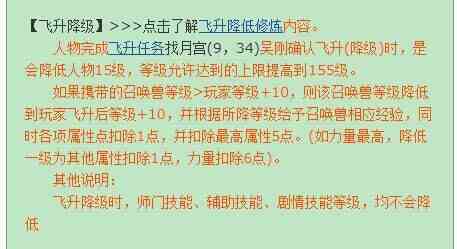 梦幻西游飞升降15级,人物完成飞升任务找月宫(9,34)吴刚确认飞升(降级)时,是会降低人物15级,飞升之后等级允许达到的上限提高到155级。