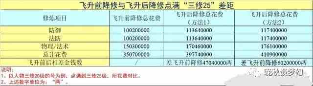 四、飞升前后降修成本对比:三项修炼点满成本差距