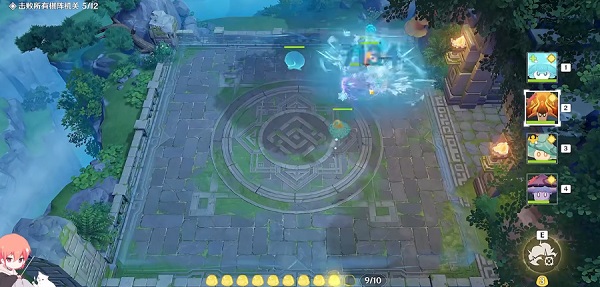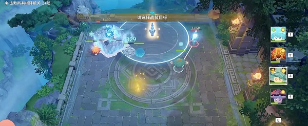 - 首先火灵蕈、风灵蕈进行进攻输出,接着就是先去打最大的一个机关,接着使用水灵蕈去奶一下。