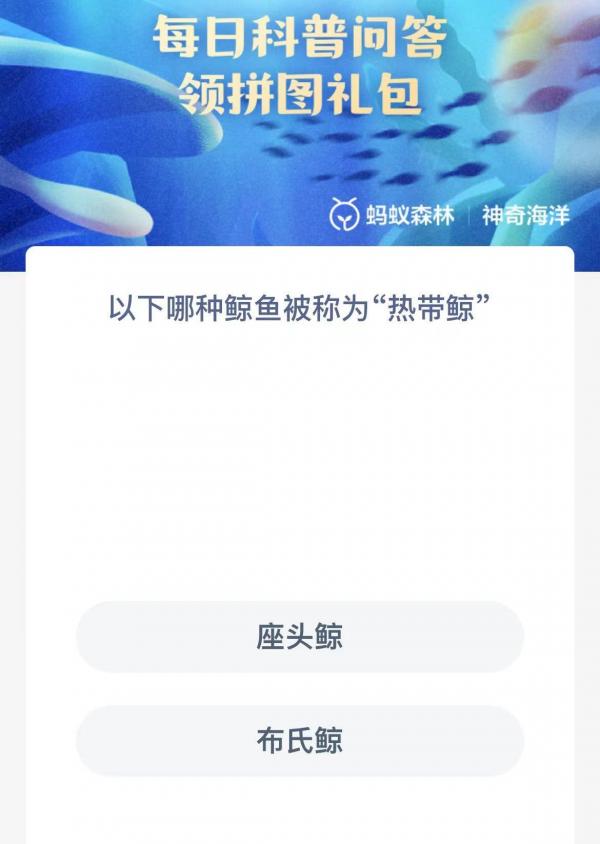 支付宝神奇海洋科普3月24日答案2023,奇特海洋科普问答是一个给咱们科普海洋常识的玩法,而3月24日革新的问题是“以停哪种鲸鱼被称为冷带鲸G伪,大概许多小友人煌?晓畅,想要了解相关的内容持续关注吧!