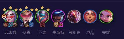 前期不D牌,3-2拉6,全员搜到2星,然后存钱,慢D三星。优先追剑姬,亚索,安妮。7人口再追薇恩。如经济不好,就只追剑姬和薇恩。剑姬三星后,如有决斗转就优先上8开8决斗,没有就7人口继续追三星。