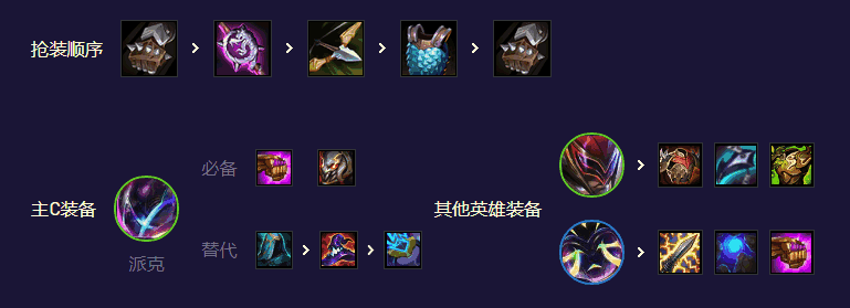 派克法爆增加伤害泰坦因为派克相当于刺客容易被集火增加生存能力同时也增加一些输出。水印防控制技能必须打出来,是必备的。帽子跟离子火花也可以带。前排龙牙反甲泰坦板甲狂徒救赎等等都可以。给薇古斯或者妖姬一把电刀增加魔法伤害,蓝BUFF跟法爆妖姬跟薇古斯都可以带。谁三星谁带。