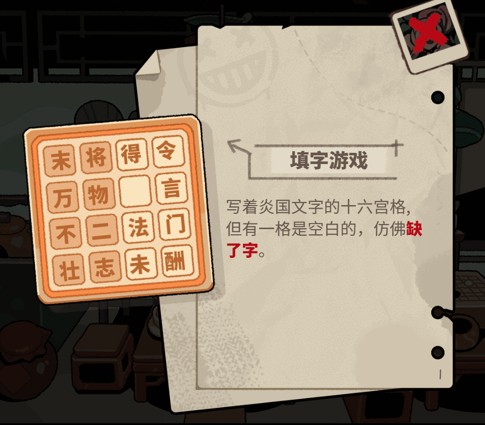 如下图所示的四个位置,最上面的刀是密码箱,按照另外三个物件右下角的页码顺序填入数字即可。