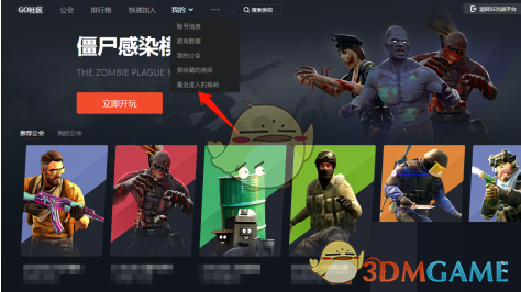 - 然后再点击上方导航栏中我的选项,接着在弹出的下拉框中选择最近进入的房间功能。