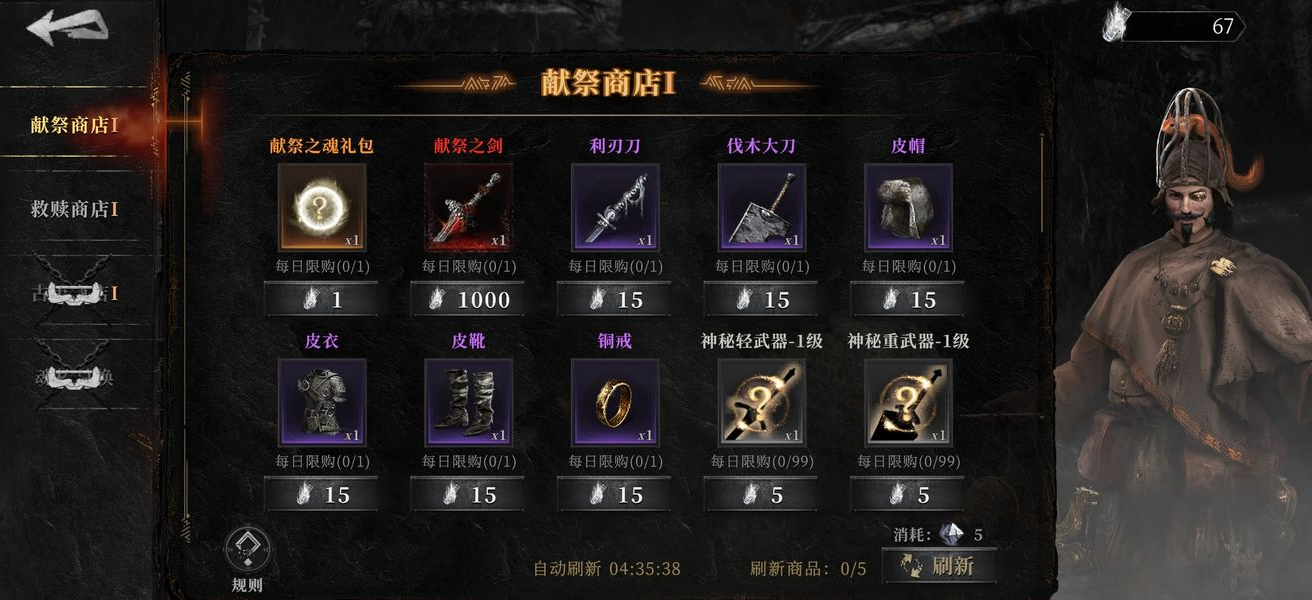 献祭商店:用献祭石购买装备