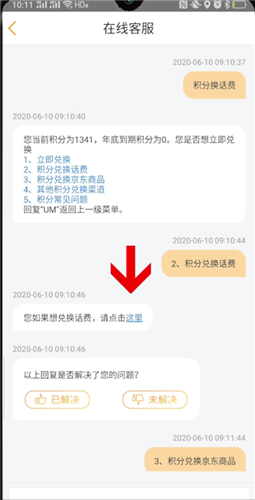 - 点击2积分兑换话费,就会提示你如果想要兑换话费,可以点击这里,我们点击一下,