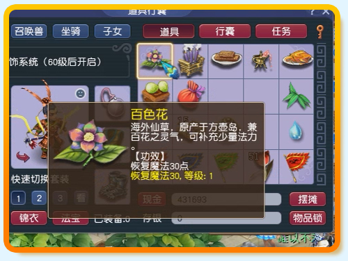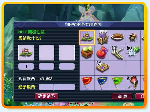 回到长寿村南极仙翁处对话,给百色花,继续任务。
