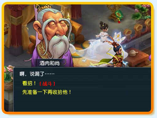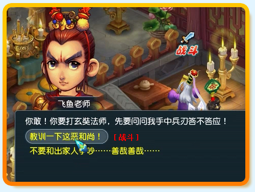 对话选择“教训一下这恶和尚!”进入战斗。