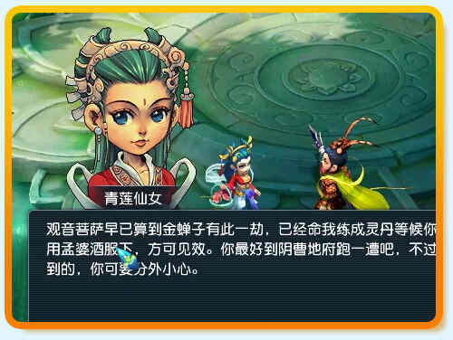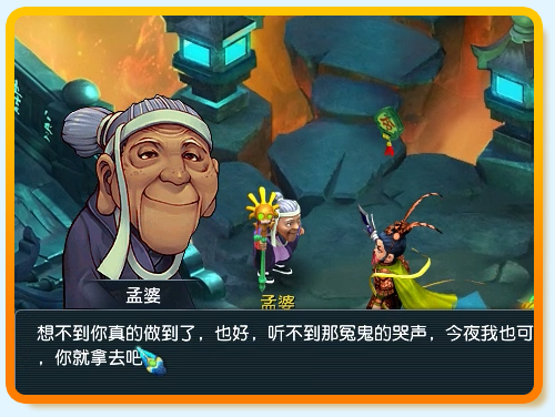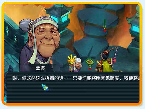 回到地府104,24,与孟婆对话。