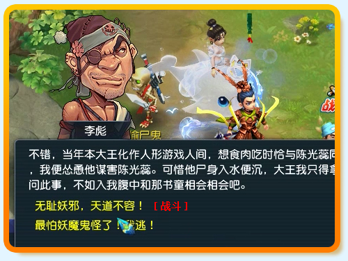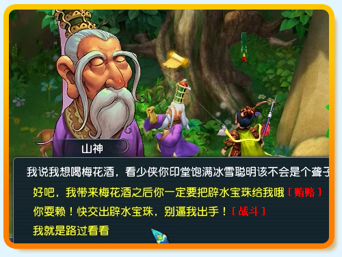 不推荐选择“你耍赖!快交出碧水宝珠……”,进入战斗。