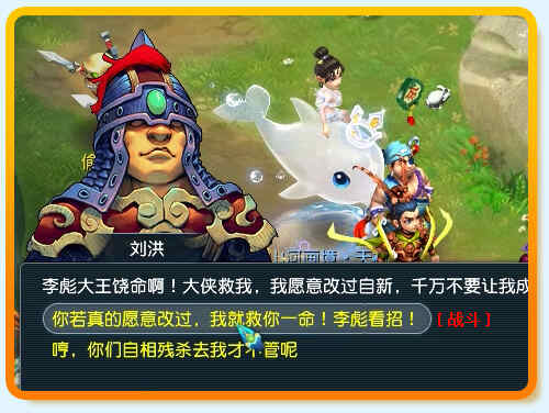 选择“你若真的愿意改过,我就救你一命!李彪看招!”再次进入战斗。