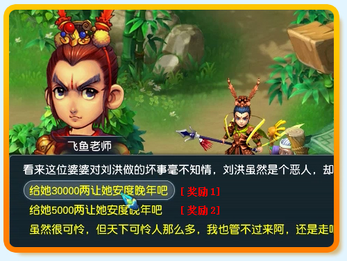 对话选择“给她30000两让她安度晚年吧”,获得奖励。