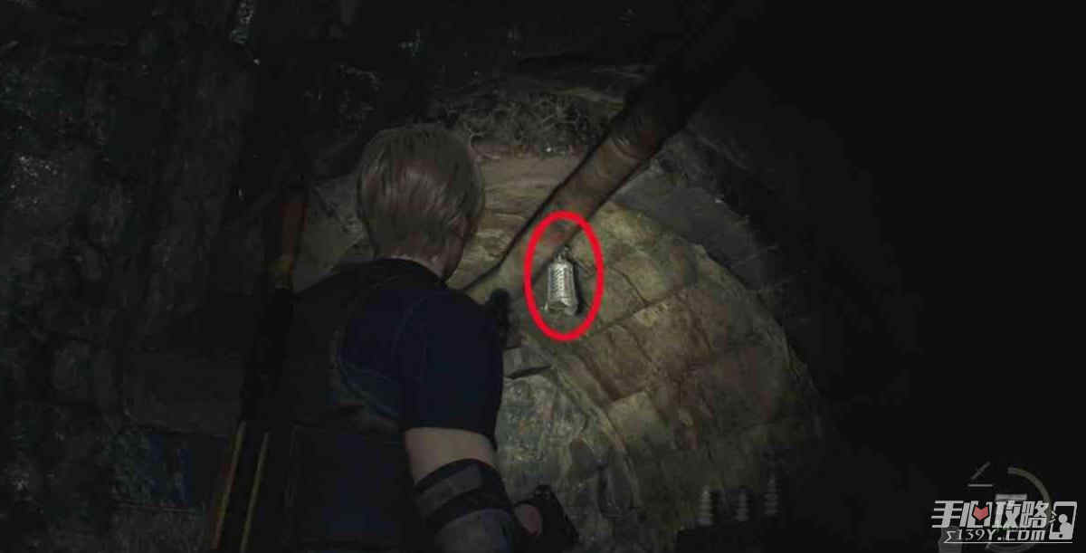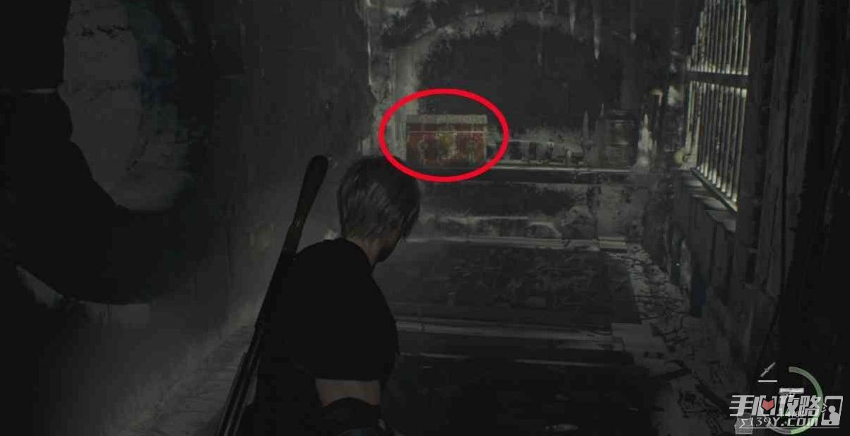 从上一个藏宝所在位置打碎左侧的墙,挤过去爬上梯子进入水路,射击左侧凹室里挂着的银色容器,就在商人/打字机存档房之前。