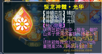 更多核心神髓可以参考 撼海狂龙开发测试快报 神髓图鉴。只要获得对应的核心神髓,任何门派的玩家都可以使用 鹰击·惊龙 、 横扫千军·惊龙 龙卷雨击·惊龙 ,并且还有额外的加成,如鹰击无需变身、暴击率增加,横扫千军暴击伤害增加、龙卷雨击累计增加暴击率直到全部暴击。收起