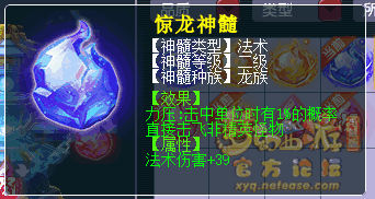 神髓核心神髓和普通神髓。核心神髓只能镶嵌一个,获得一个指定的门派技能,如 鹰击·惊龙 ,在携带镶嵌该神髓的获神塔后,玩家可以在盘龙岛上使用 鹰击·惊龙 ,不仅可以使其他门派玩家直接使用鹰击,同时还有额外的效果;二级、技能加成、三级核心神髓还会提供属性加成。普通神髓则提供特殊机制、属性加成。