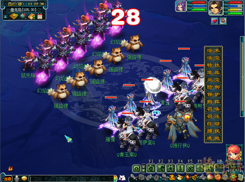 图为笔者携带 横扫千军·惊龙 ,在盘龙岛进入战斗后,虽然笔者门派为天机城,但是可以额外使用横扫千军·惊龙这个技能,效果和常规的门派技能一致,同时还有额外的加成。