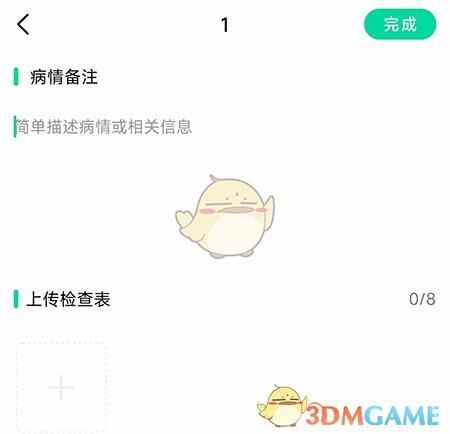 - 然后就可以填写病情相关信息,上传检查表了。