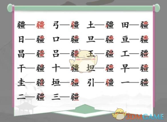 疆,弓,土,田,日,口,旦,亘,昌,吕,王,工,干,十,坦,早,圭,垣,引,一,二,三