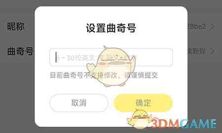 - 弹出选框,填写曲奇号之后点击确定即可。