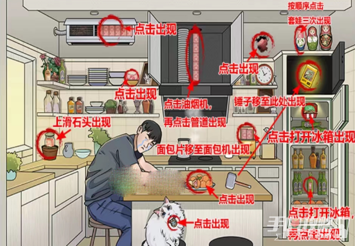 - 打开冰箱上层和下层都有私房钱,面包片移动到面包机也可以找到私房钱,其余私房钱可以看图找到
