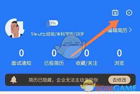 - 首先打开成都人才网,进入个人中心,点击右上角设置按钮;