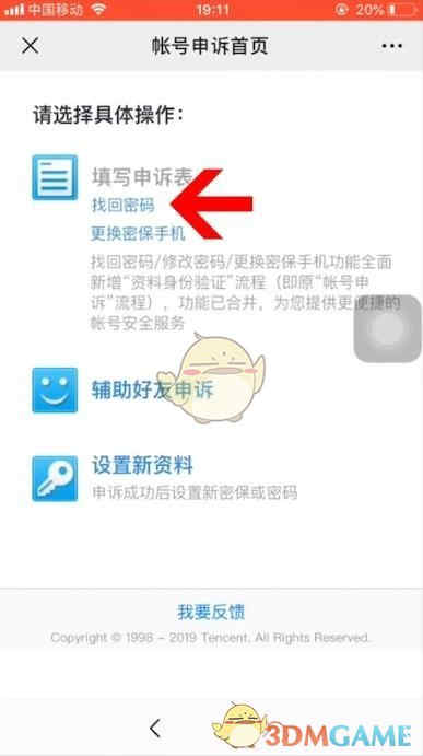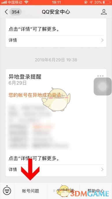 - 点击进入QQ安全中心公众号,点击帐号问题。