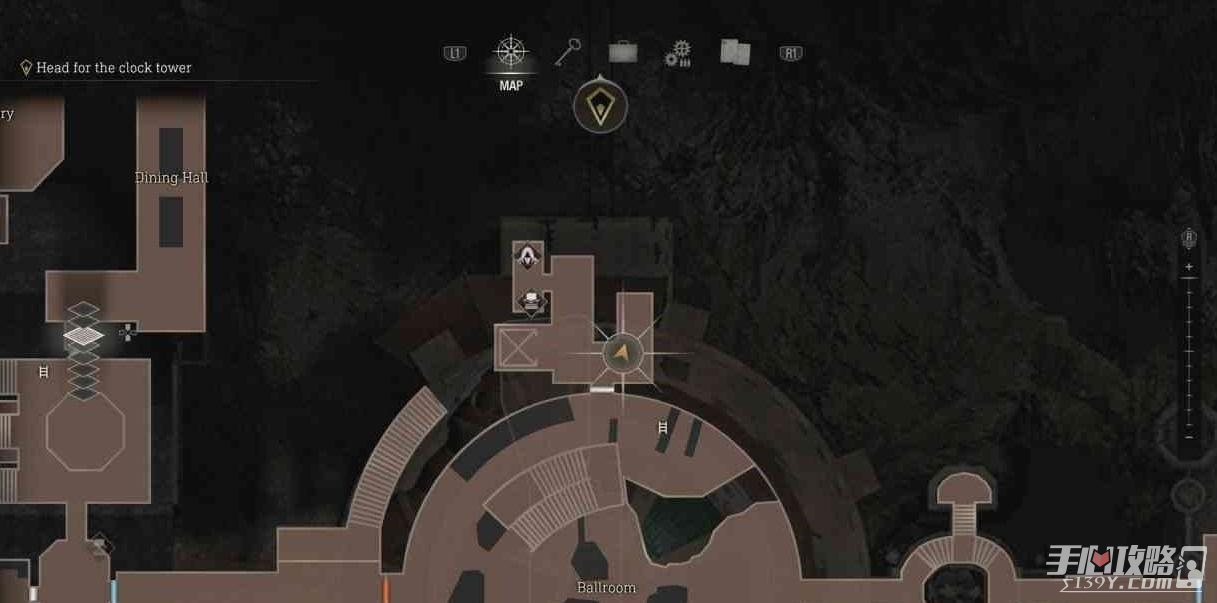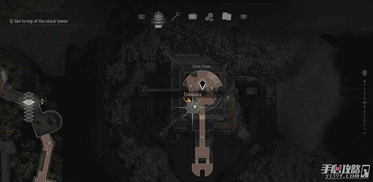 位于同一片区域,在钟楼最顶端爬梯子往下,在左侧即可找到。先不要启动开关,否则会触发无法返回的时间点(乘坐电梯),之后就无法在城堡自由探索了。