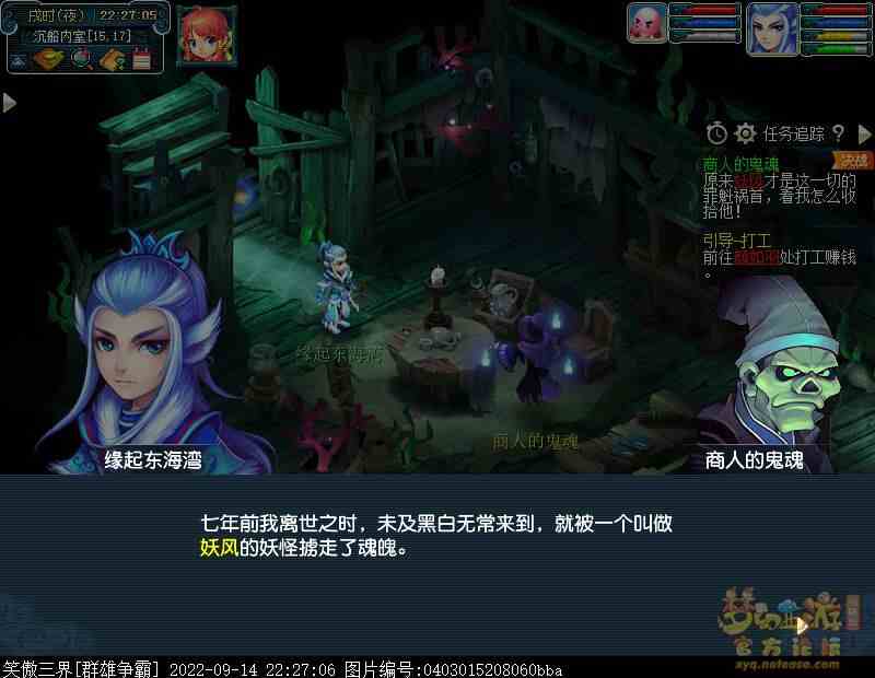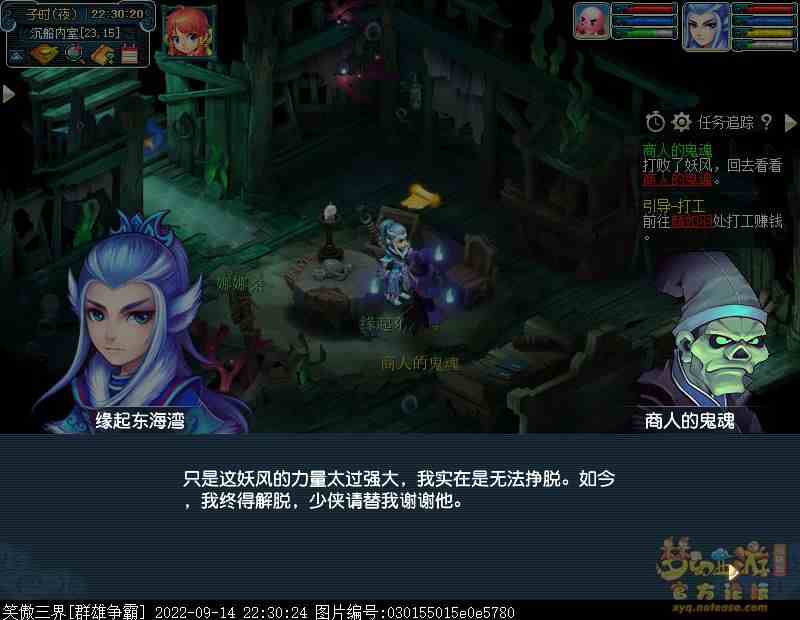 3.打败了妖风,回去看看商人的鬼魂。〔点击对话〕